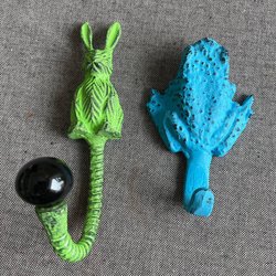 Säljer äldre klädkrokar i metall. Perfekt för att hänga upp kläder eller andra föremål.