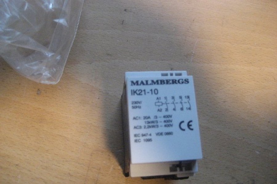 MALMBERGS IK21-10. 230V 50Hz. AC1: 20A / 3-400V AC3: 2.2kW/3-400V IEC 947-4 / VDE 0660 IEC 1095
