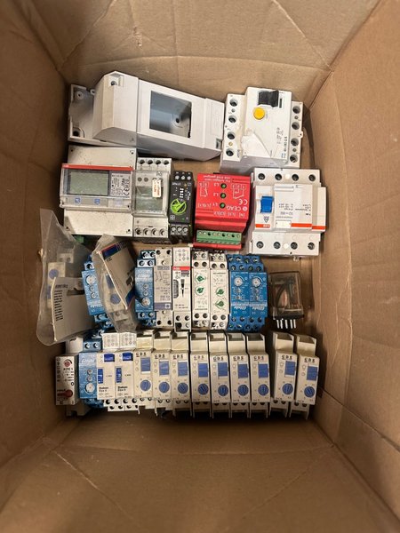 Diverse elektriska komponenter inklusive ABB, Eltako, Theben Elpa 8, GDS Electric, och CEAG.