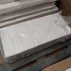 Två styck element, en-fas 230 V, 50 Hz från Gnosjö Klimatprodukter AB. Effekt 400 W, mått 835x300 mm. Infästningsanordning medföljer.