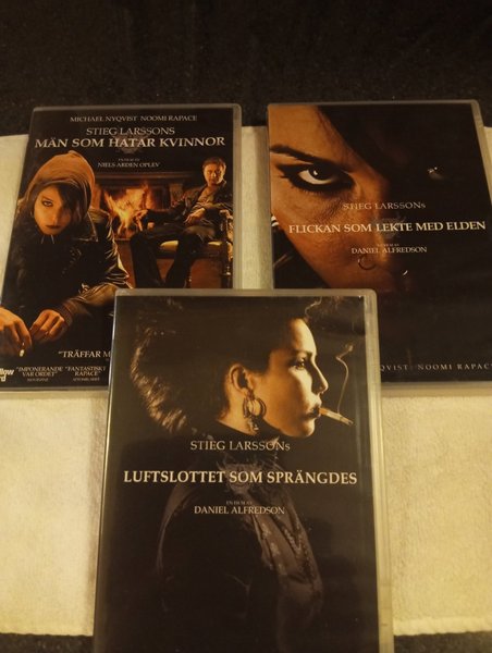 Komplett Millennium trilogi på DVD. Inkluderar: Män som hatar kvinnor, Flickan som lekte med elden och Luftslottet som sprängdes. I mycket fint skick.