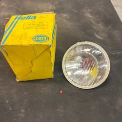 Hella strålkastarglas med beteckning 4475. K 11667. 12-92587. Made in Germany. IGM 3406 LA. Ser lite slitet ut.