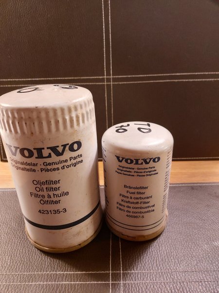 Oljefilter och bränslefilter till Volvo TD70. Oanvända men har legat som hyllvärmare ett tag
