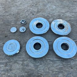 Navkapslar till Volvo 140-160 Serien, fint skick lite skav, repor och någon liten bula förekommer. Gummilister är hela och fina och skruvarna sitter kvar