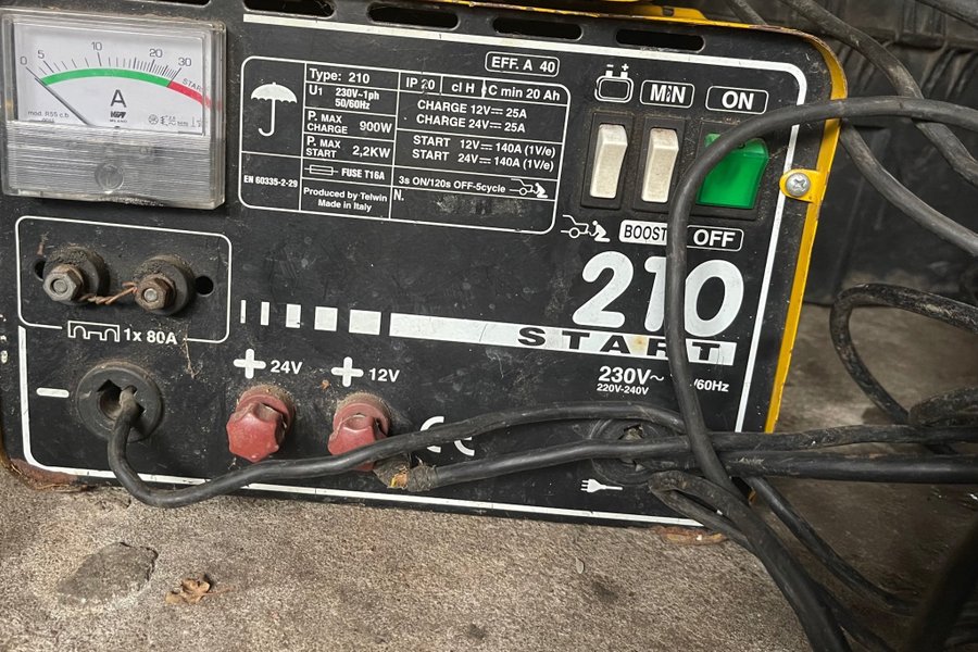 Batteriladdare Telwin Start 210 för laddning av 12V och 24V batterier. Laddström på 25A för både 12V och 24V. Startström på 140A för både 12V och 24V. Max laddningseffekt är 900W och max starteffekt är 2,2KW. Utrustad med säkring T16A. Tillverkad i Italien.