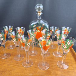 Snapsglas (troligen glas) vågar inte gå ed på det men är ovanligt tunga för att vara glas. 10 cm höga. Döm efter bilder tar ej ansvar för ev frakt skador packas väl