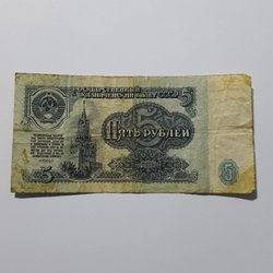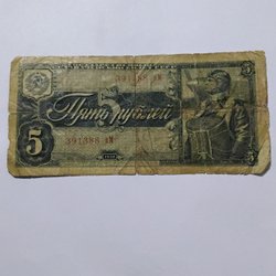 En sedel med värdet 3 Rubel från 1961. Serienummer ?? 5750246.