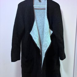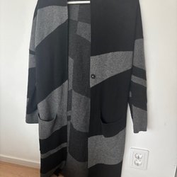 Svart kofta med knytband i midjan. Koftan har en lös passform och långa ärmar. Kommer från djur- och rökfritt hem.