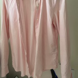 En mörkblå kofta med tryckknappar framtill. Den har en rund halsringning och två fickor fram.