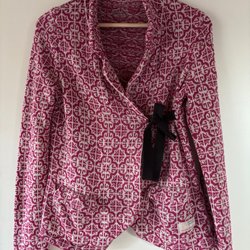 Stickad kofta med puffärmar och knäppning framtill. Vintage kofta
