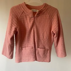 Rosa stickad kofta med v-ringning och knäppning framtill. Från Gina Tricot storlek L, lappar kvar.