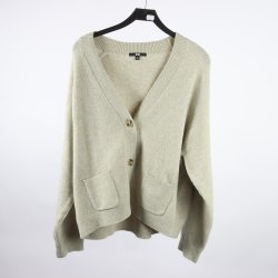 En snygg grön stickad kofta med knappar framtill. Den har långa ärmar och en lös passform. Perfekt för hösten och vintern. Knappt använd.