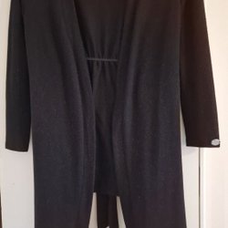 Lång, ribbstickad kofta med lång ärm.