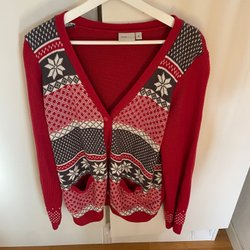 SUPERFIN OCH SKÖN KOFTA FRÅN INTOWN I STL L. GRÖN/TURKOS/BRUN MELERAD. 2 TRYCKKNAPPAR FRAMTILL. AKRYL POLYESTER VISKOS ALPACKA.