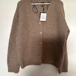 Beige kofta med guldiga knappar och två fickor framtill. Koftan har en öppen design utan krage och vida ärmar som kan vikas upp. Passar bra för en avslappnad men stilfull look.
