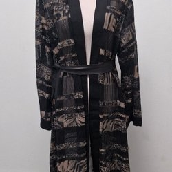 Långärmad kofta med öppen front och fransdetaljer nedtill. Mönstrad design med fjärilsmotiv på ryggen. Perfekt som ett lätt ytterplagg eller för att komplettera en outfit.