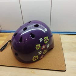 En svart hjälm med ventilationshål. Perfekt för cykling, skateboard eller andra sporter.