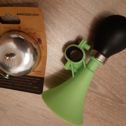 Cykelklocka i metall med fäste för montering på cykelstyre. Klockan har en klassisk design och ger ifrån sig ett tydligt ljud.