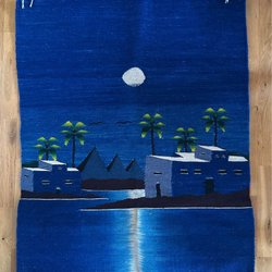 Blå kimono/morgonrock i blank satin med broderad drake på ryggen och mindre broderade motiv framtill. Foder i mörkare blått. Enligt lappen silke/siden, men jag kan inte gå i god för att det stämmer. Det kan finnas inslag av konstsilke. Rymlig storlek, märkt XXL. Två fickor. Längd bak 130 cm och skärp 195 cm. Rök- och djurfritt hem. Samfrakt