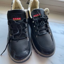 Svart hoodie med texten ”DURHAM NORTH CHROLINA” tryckt på framsidan. Hoodien har en ficka på magen och en dragsko i huvan. Insidan är fodrad med ett mjukt, fluffigt material.