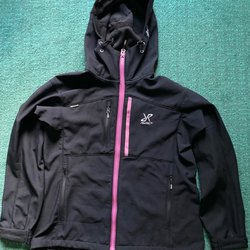 Rosa och grå Bivouac hoodie med RVRC logga på framsidan och baksidan. Den har en ficka på vänster ärm och två fickor på magen. Mjuk och värmande. I bra använt skick, men finns vit fläck på ena ärmen, som kanske går bort i nästa tvätt. I storlek XL/42.
