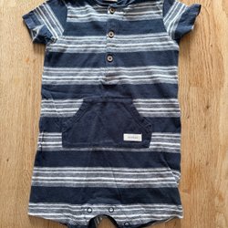 Knappar I grenen för enkel blöjbyte. Lappen bortklippt ,men tror den är från hm och storl.74 är inte 100% säker ,så köp hellre till mindre barn o växter i.