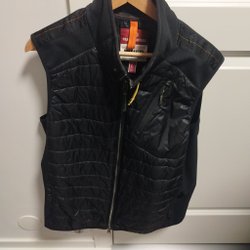 Svart och vit Hugo Boss väst med dragkedja fram och logotyp på bröstet och baksidan av nacken. Lite smuts förekommer.