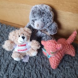 En söt, handgjord virkad katt. Perfekt som en present eller som en dekoration. Den är gjord av mjukt garn och har broderade detaljer.