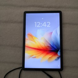 Surfplatta med vit baksida och dubbla kameror. Skärmen är svart med sprickor.