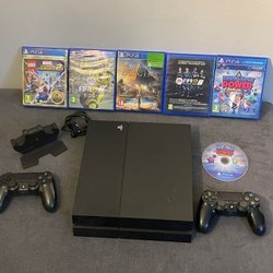 Renoverad Playstation 4 Slim CUH-2116A med handkontroll, spel och alla sladdar