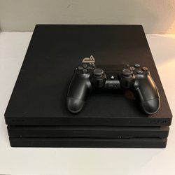 Playstation 4 Pro med en handkontroll och kartong.