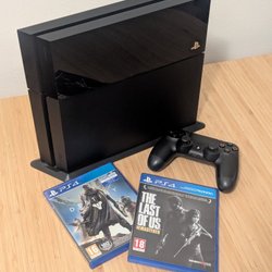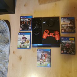 Playstation 4 fungerar bra, dock så är handkontrollen lite konstig. Så en ny kontroll hade nog behövts. Kontrollen fungerar delvis. Spel som medföljer: crash bandicoot 4, Lego city undercover, GTA V five (utan fodral). Allt är i använt skick och finns vissa repor på skivorna och själva konsolen. Kablar ingår inte.