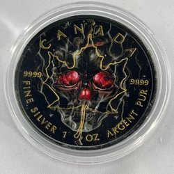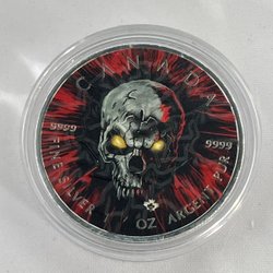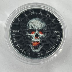 Detta exklusiva 1 oz silvermynt från 2019 med valören 1 Dollar är präglat i .999 rent silver och har en begränsad upplaga på endast 500 exemplar. Myntet bär namnet King’s Skull och är ett samlarobjekt med stark symbolik.