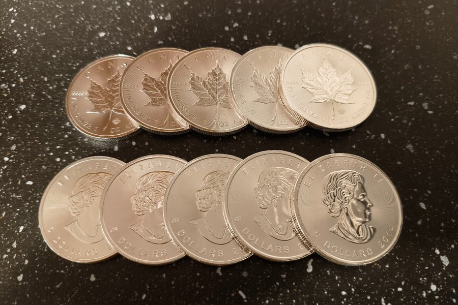 10st 1oz Silver Maple Leaf från Kanada.