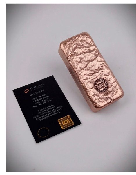 Koppar tacka 500 g i hög renhet (Cuivre 999) märkt Heracles . Helt ny oanvänd.