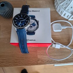 Säljer en OnePlus Watch 2. Klockan har en stilren design med en blå armband. Perfekt för den som söker en modern och funktionell accessoar.