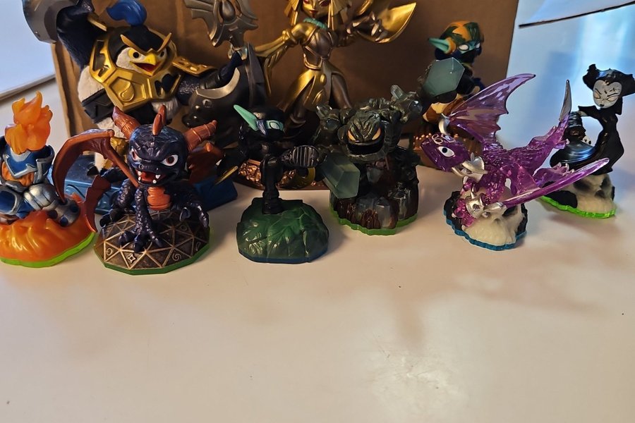 En skylanders samling med 9st skylanders, dem flesta är rätt bra schick förutom hex och ignitor, som är lite skadade eller saknar delar.