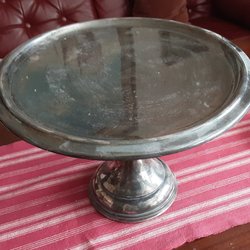 tårtfat på fot med dekorativ kant. Tror det är silverplätterad men är inte helt 100 säker. Behöver sig en putsning. Och mindre repor kan finnas. Därav låga utgångs priset