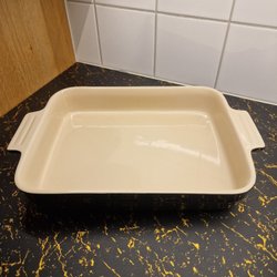 En festlig ugnsform . Mått 30x20cm.Djup 7cm. Hela formen med handtag är 41cm.