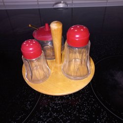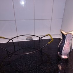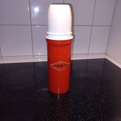 Tillverkad i aluminium med blålackad mittdel skav och märken förkommer kolla bilder noga!! Saknas även korken men en trevlig pryl å ha på hyllan i köket