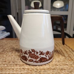 Kaffekanna med trähandtag. Märkt : 1/2 k S.B.