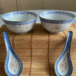 Två blå skålar.