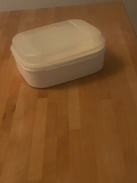 En praktisk plastlåda med tillhörande lock. Perfekt för förvaring av mat eller andra småsaker.