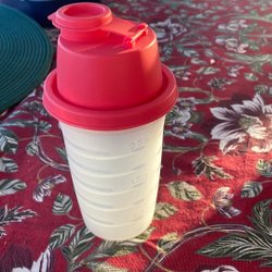 Tupperware shaker med måttangivelser. Se bilder.