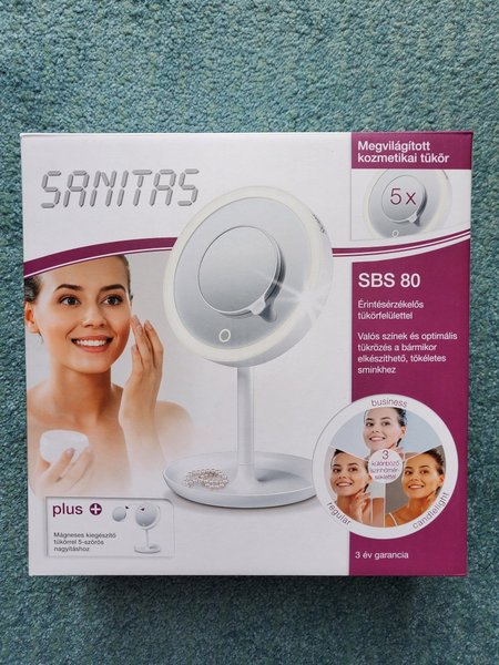 Spegel med lampa, liten förstornings spegel, skål under för smycken och batterier medföljer!