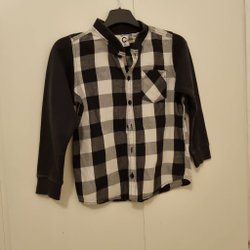 Fint skjortpaket med fyra skjortor i olika färger och mönster. Skjortorna har lång ärm och krage. Stl 122