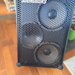 En bärbar Bluetooth-högtalare. Den har en robust design och är enkel att ta med sig. Högtalaren är utrustad med en USB-C-port för laddning.