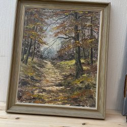 En vacker tavla med motiv av en skog och djur.