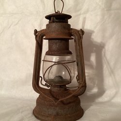 En vacker fotogenlampa med lila glasbehållare. Perfekt som stämningsbelysning eller som en dekorativ inredningsdetalj.
