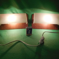 Två sänglampor med rosa och vit färg. Perfekt som mysbelysning.sänglampor,ca 30 år